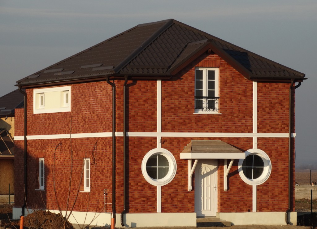 Ca si design exterior vila este decorata cu caramida aparenta tip Klinker si elemente decorative care incadreaza frumos geamurile rotunde specifice vilelor de tip Paris. La interior vila este primitoare si calda, impartita ergonomic in zona de la parter pentru intreaga familie si la etaj cu 2 dormitoare ensuite (fiecare dormitor are baia lui).